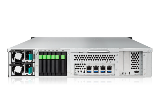 创新的架构设计使XCubeNAS成为一款多功能混合存储设备。在不影响现有3.5″Large Form Factor(LFF)插槽情况下,XN5008R在系统背面设置6个2.5″Small Form Factor(SFF)插槽(支持4块SFF SATA SSD和2块SSD SSD),支持122 TB(14TB x8 + 2TB x4 + 1TB x2)。