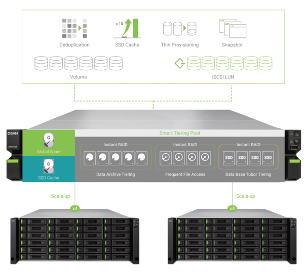 QSM 3.0 能有效解决各种应用程序对效能的需求。SSD 快取提高数据访问速度,自动分层技术针对存取频率对数据进行分类,能更加速对常用档案的读取。