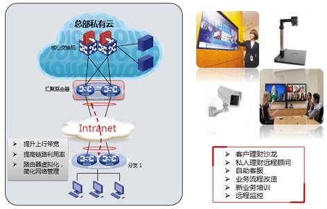 在创新网点中会部署大量的多媒体应用,例如远程客服、客户远程集中培训、内部新业务培训、远程监控等,流媒体的应用大大提高了网点对带宽的需求,未来网点的带宽规划将达到4到10M的线路需求。