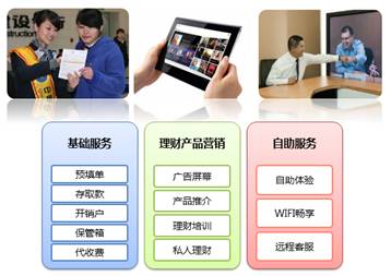 通过WIFI网络和智能终端进行理财产品的推介,大堂经理可以将营销工作覆盖到网点的任何一个角落,营销更加精准;
