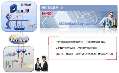 H3C基于有线无线网络设备与IMC平台提供丰富的无线管理、BYOD解决方案以及实践,帮助银行搭建平台化的网点网络基础架构。