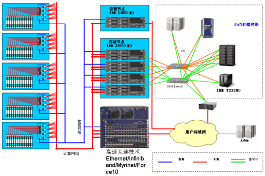 在本方案中,我们使用的高性能计算,简单的说,集群(cluster)就是一组计算机,他们作为一个整体向用户提供一组网络资源,这些单个的计算机系统就是集群的节点。高性能集群在计算过程中,各节点是协同工作,他们分别处理大问题的一部分,并在处理中根据需要进行数据交换。各节点的处理结果都是 终结果的一部分。高性能计算正在变得越来越简单,在很多领域都已经变得非常成熟。现在只需要传统高性能机器的很少的一部分就能构建一个集群网络。通过在集群种预算节点计算机上安装平行处理软家,可以江在传统计算机上运行的串行程序作为并行的运算过程在多台集群计算机上完成。一方面,不需要花费高昂的代价购买高配置的大型服务器就可以达到相近甚至更高的计算性能。另一方面随着应用对运算性能的要求的提高,可以按照需求对集群系统进行升级;